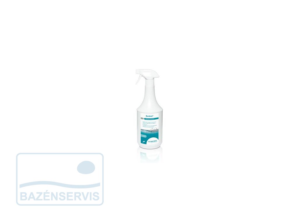 Silný tekutý čistiaci prostriedok Bordnet v 1l balení s rozprašovačom. Ideálny na odstraňovanie znečisteného pásu na hladine počas prevádzky ako aj na celkové čistenie bazénu.