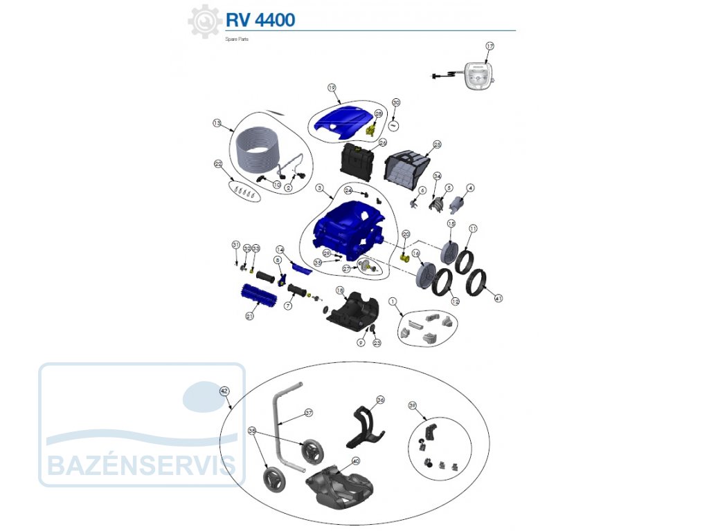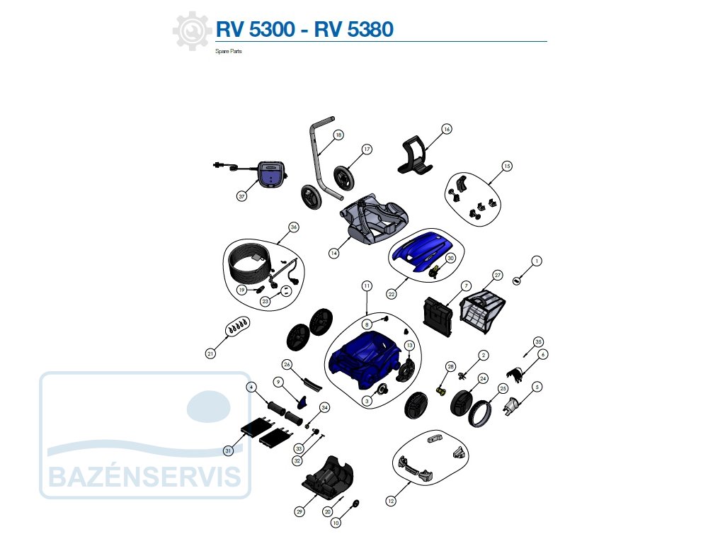 Zodiac RV4400, RV5300, RV5380, RV5400, RV5480iQ, RV5500 a RV5600 - náhradné diely
